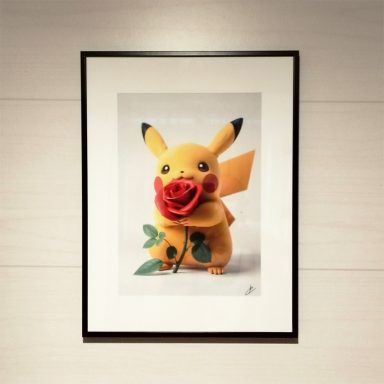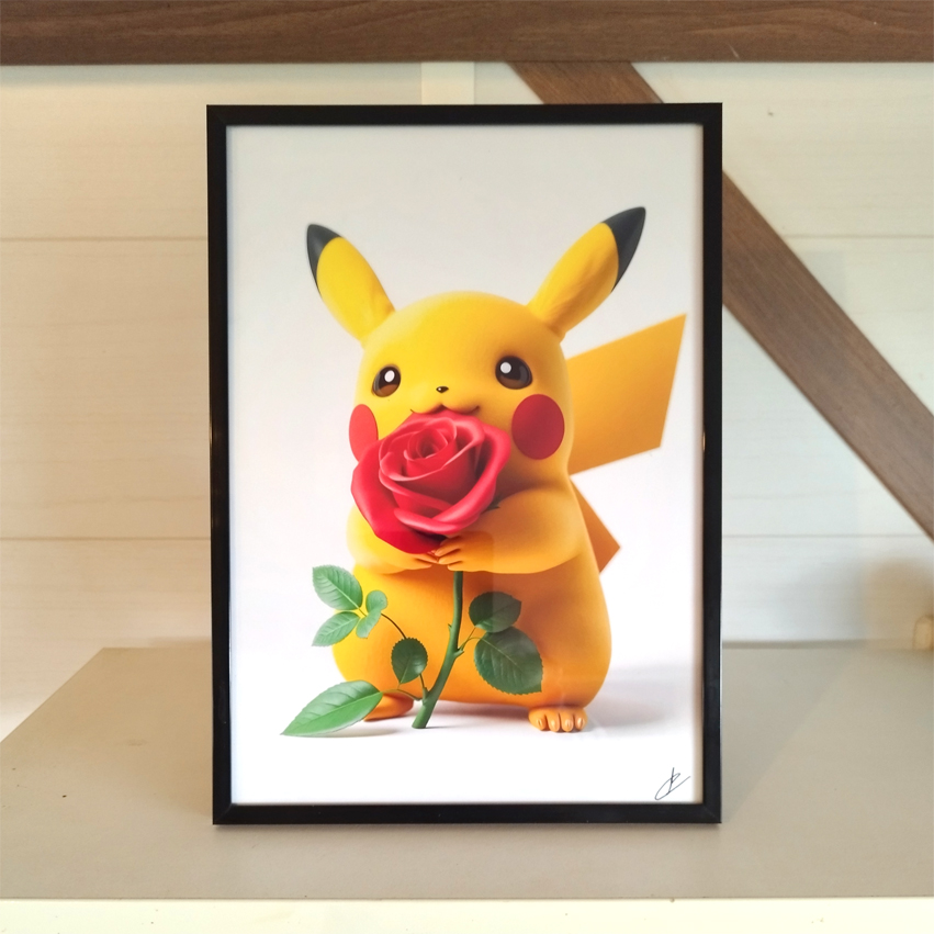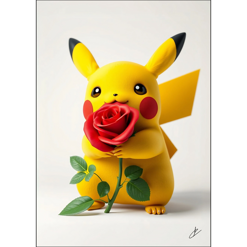 Pikachu hugging a rose